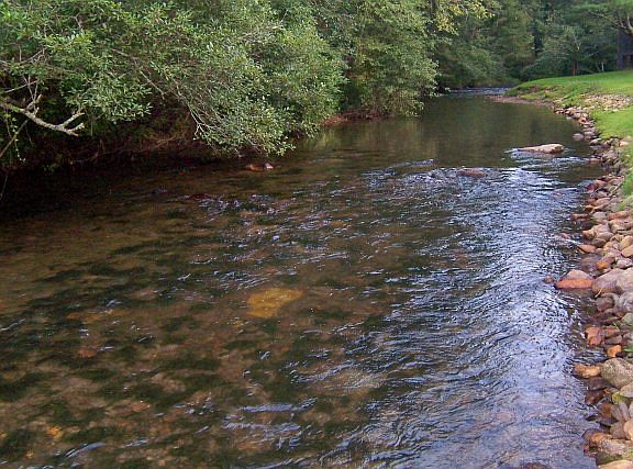 Come enjoy this park like setting on beautiful Coweeta Creek( 15-20 ft. wide). Another small stream on property with 2 big apple trees(fully loaded with apples),nicely landscaped with a gorgeous yard for kids or grandkids. This home has a nice front deck & a large back covered & screened deck that looks directly into the creek. Walk in closet in master BR. This would make a great seasonal or full time home. Very few creek front settings with this kind of appeal. Current owners do have flood insurance but house DID NOT flood during Ivan(2004) per owners.New well pump installed 12/2/2013.