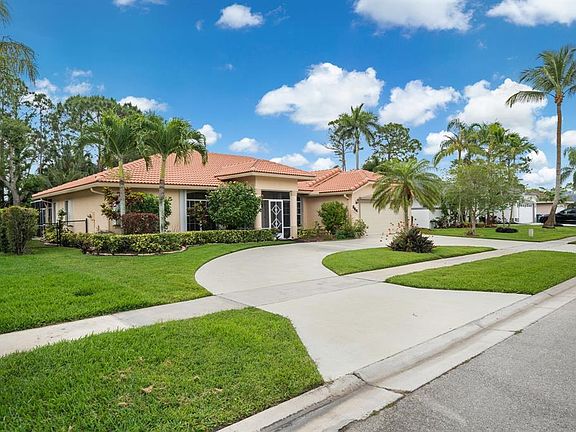 Welcome to your dream home in Saratoga Pines! This delightful 3-bedroom, 2.5-bath home offers an inviting den, which could be a 4th bedroom or home office, and a large family/dining room with a dynamic split bedroom layout. The oversized kitchen is a chef's paradise with wrap-around granite countertops and an abundance of upgraded cabinet space. Enjoy peace and privacy with a beautiful natural area backdrop and no rear neighbors. Other perks include a separate laundry room, accent-lighted vaulted ceilings, and a new (2019) roof. A whole house generator (2017 - excluding A/C) and a new (2018) water heater offers peace of mind. There is plenty of parking with a circular drive and the 2-car garage boasts an epoxy finish floor and a new impact-rated door (2023). See add'l remarks in Supplement The recent interior designer paint job, waterproof vinyl flooring, ceramic tile, and laminate in bedrooms add an unparalleled touch of elegance. The property also includes both front and back screened porches and an additional automatic screen to cover the garage opening. The generous backyard houses an enticing pool - perfect for Florida summer days, along with various fruit trees. Community amenities include tennis courts, heated pool, playground area, basketball Court, and more. This opportunity won't last long!