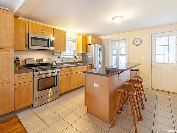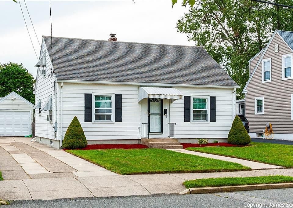 Classic 6 room cape cod style home with many updates including newer kitchen with newer stainless appliances, open floor plan to formal dining room, newer heating system, hardwood and ceramic tile flooring, replacement windows, 4 year old roof shingles, back porch, fenced yard and a garage. Easy stroll to Slater Park and close to all conveniences including highway and the T
