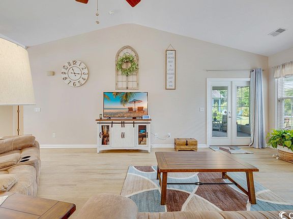 Open the door to this beautiful Stockton B Model in a 55+ community close to hospitals, shopping, dining and a short drive to the beach. This 3 BR, 2 Bath home has new LVP flooring and new appliances along with a wonderful front porch for sipping coffee and relaxing. The great room features a propane fireplace and cathedral ceilings. Formal DR, open floor plan and a split bedroom plan. New French doors lead to your sunroom or your patio with a beautiful pergola. This home backs up to conservation land that can't be built upon and is private and serene. The Myrtle Trace Grande community has a clubhouse, pool and hot tub with lots of activities and a fun place to gather. So grab your belongings and make this home yours!