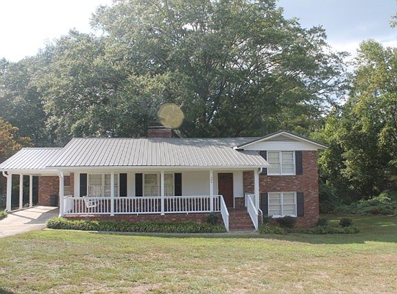 Lovely setting AND lovely price for all this home offers! Five bedrooms, three baths, great room w/fireplace, living/dining room w/fireplace, spacious kitchen w/ all appliances (including fridge), separate laundry room....all this space plus brick exterior, single carport,& a porch made for Sunday company! With it's master on main, there's 2 bedrms upstairs w/shared bath, & 2 bdrms down w/bath.