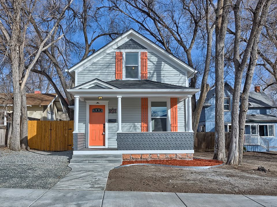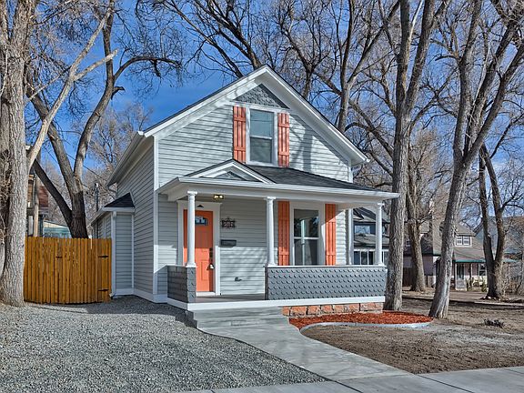 Across the street from Shooks Run Park & trail with unobstructed Pikes Peak views & easy walk to downtown! Don't miss this golden opportunity! New roof, new doors, new Energy Star vinyl windows, covered front porch & new rear deck, fully fenced back yard, new paint inside & out, new oil rubbed bronze fixtures; large all new main level bath w/custom tile, claw foot tub/shower/fixtures; all new kitchen w/stainless appliances, cabinets, pendant/track lighting, island, granite countertops & large walk in pantry. See Supple.. Newly refinished original wood floors & new custom woodwork. Unfinished basement perfect for storage/workshop with exterior door for easy access. Newer furnace & water heater. New sewer clean out & sewer line power washed & scoped (video available). New concrete/gravel drive with off street parking. New sidewalk and walk ways. New rear deck and private, fully fenced backyard.