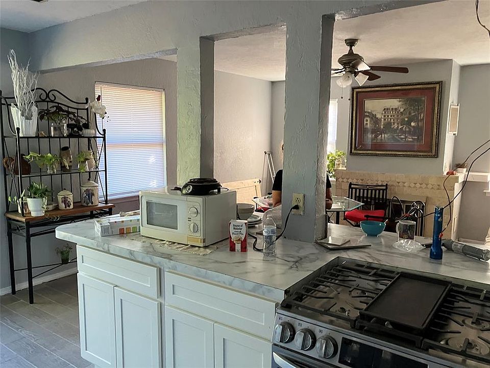 Modern finishes and fixturesNew countertopsFully fenced backyardFresh paintLarge corner lotRefinished fireplaceNew flooring