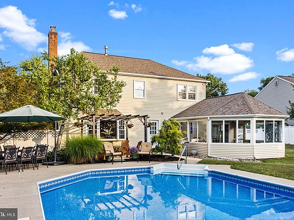 This is the home you’ve been waiting for! Welcome to 245 Newgate Road in the highly desirable Highland Gate neighborhood and award-winning Neshaminy School District. Brimming with curb appeal and completely move-in ready, this 4 bedroom, 2.5 bath center hall, brick colonial has been meticulously maintained and is ready to impress. Stepping inside to the rich wood flooring, you are greeted by a large foyer with custom crown molding and wainscoting. The foyer is flanked by the formal dining room and formal living room / office space, each with the beautiful crown molding and wainscoting. Passing a double coat closet, enter the family room with a stunning floor-to-ceiling stone fireplace with gas insert. Offering a secondary entrance to the outdoor living space, the mudroom also hosts the laundry and storage cabinets. The recently updated kitchen features light white cabinets, gleaming quartz countertops, stainless steel appliances including a gas stove with two ovens, as well as a center island for entertaining. The adjoining breakfast room offers added dining space and access to the expansive 400 square foot 3-season room with gorgeous custom tile floor inlay. The 3-season room overlooks the backyard and pool providing access to both the house and backyard. The well-manicured backyard is fully fenced in and made for entertaining with its large in-ground pool (with new liner), patio and pergola. The full, finished basement provides additional living and entertainment space with a pool table and exercise area as well as a huge separate storage room. Upstairs, the generously sized master bedroom is trimmed with crown molding, ceiling fan and a walk-in closet with custom closet system. The updated ensuite bath features a double vanity and glass shower enclosure. As an extra bonus, the sitting room / office area has a wall-to-wall custom closet for even more storage. Three additional bedrooms are each nicely sized, all with crown molding, ceiling fans, and double closet. They share a hall bath that has been recently updated. A newer roof, HVAC system, and two-car attached garage with EV charger add to this home’s great value. Fantastic location within walking distance to Maple Point Middle School, Community Park, and easy access to multiple commuter routes and an array of shopping choices. Schedule your tour today to see what an amazing lifestyle 245 Newgate Road has to offer!