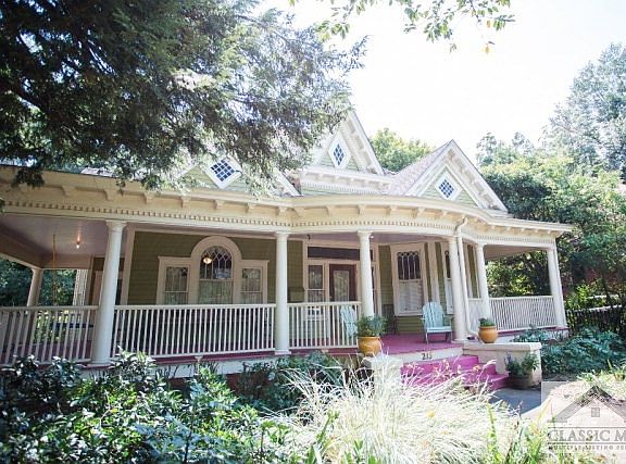 Opportunities like this dont come along often. This turn-of-the-century Queen Anne is truly one of the most beautiful and architecturally intact historic homes in Athens. Most of the architectural and structural elements are original - heart pine flooring, original mantles, 12 tongue and groove ceilings, heart pine exterior siding and dental molding trim, original windows with stained glass. The grand entry way is welcoming and boasts formal living and dining rooms with original trim, decorative fireplaces, and glass doors. There are three bedrooms and three bathrooms, the bedrooms have original decorative fireplaces and mantles. The master bedroom has a study / sitting area. The kitchen was updated with furniture grade cherry cabinetry, and a sunroom / eating area. Outside is a wrap around porch and a porch off the sunroom. The backyard has a formal garden that is quite private and offers in-town seclusion with paths to private garden spaces - original landscape plan available for purchaser. The entire property is bordered by an iron fence. The basement is an exterior entrance garden room / workshop and offers great storage. The attic spans almost the entire house and offers room for expansion. Normal town is a bustling neighborhood with many great shops, eateries, watering holes, and Chase Street Elementary within walking distance. What a treasure.