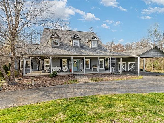 Charming home in the heart of the Triad on over an acre lot! Start your morning with a cup of coffee on the wrap around porch. Inside you will find an updated kitchen with granite countertops and stainless appliances. The living room features built-ins and a gas fireplace. The primary suite is located on the main level. Upstairs you will find 3 additional bedrooms. In the basement, you will find an in-law suite with a private entrance featuring a bedroom/bathroom, large living area and a kitchenette. Schedule your showing today!