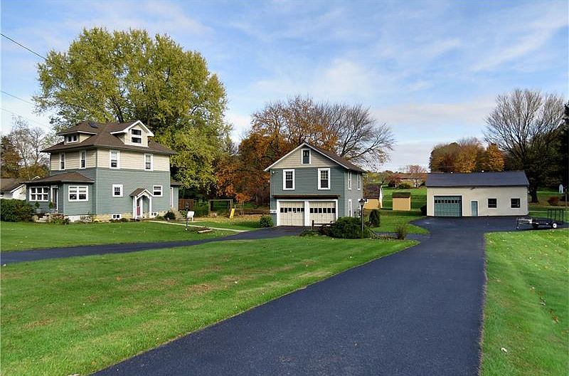 4 bedroom, 2 full bath 2 story totally upgraded Craftsman style home. Prime condition. 8 stall garage with 3 phase electric, 2 stall detached garage with apartment above. Also 40x30 equipped garage, 10 ft door. Home features deck and concrete patio, spiral staircase to attic, 2 dormers, 2 skylights, Newer vinyl siding, windows, flooring, insulation, furnace roof and paving.