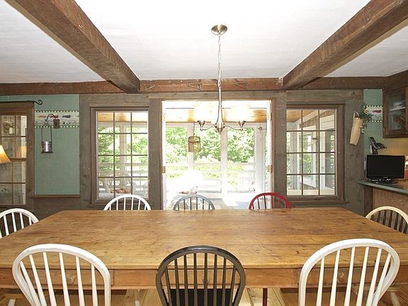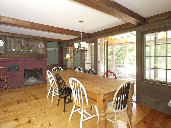 Set back on a scenic way, this antique farmhouse has been partially renovated and has an in-law apartment! Circular driveway invites you to the farmer's porch. Step inside the Main House with oversized kitchen/dining area & newly finished wide plank wood floors. Fall in love with the French doors opening to a 3-season porch w/skylight. Behind the kitchen is a den, laundry room and first floor bath (renovated 2017). A first floor bedroom, parlor, living room & formal dining room w/original corner cupboard complete the 1st floor. Upstairs are three sunny bedrooms, a bath and nursery/office. Built in drawers add to function & charm. A private entrance brings you to your In-law apartment; open floor plan with soaring ceilings. Warm and inviting living room with wood stove plus dining and kitchen areas make for a happy gathering space. 2nd floor has Great Room, bedroom, bath & walk in closet plus attic. A little sweat equity will earn instant equity So many possibilities!