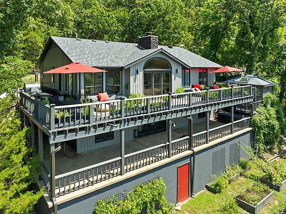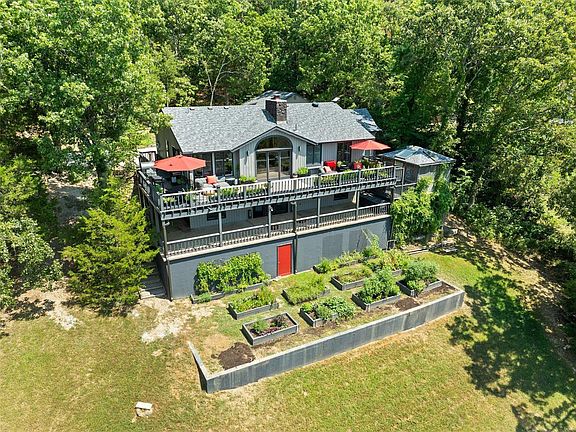 Experience unmatched lakeside elegance in this dream retreat, where luxury seamlessly blends with comfort, overlooking breathtaking Table Rock Lake. This private haven features three expansive deck levels, perfect for entertaining guests or savoring privacy. At the heart of the home lies a chef’s kitchen, dazzling with quartz countertops, custom cabinetry, and top-of-the-line appliances, making every meal a gourmet experience enhanced by stunning lake views. Enjoy cozy evenings on the main floor by the stone wood-burning fireplace or the intimate setting of the wood-burning stove on the lower level. Outside, explore charming herb gardens, a freshly seeded lawn, and a welcoming fire pit—ideal for daily life and vacation relaxation. Two spacious detached garages offer ample storage, and a 12’x30’ boat slip is available for an additional ($75K) fee. Witness breathtaking sunsets in this exclusive retreat, offering tranquility and sophistication, awaiting your personal touch.
