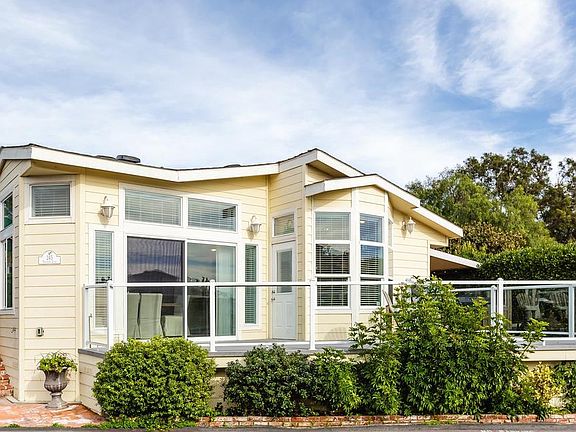 Fantastic Newer Silvercrest Home, located in the upper bluff area of Paradise Cove, just steps away from the private beach trail. Ocean views come with this 3 Bdrm, 2Bth , 1900 sq ft, highly upgraded home. Custom features include high 10 ft ceilings with transom windows, allowing for an abundance of interior light. Oak wood flooring, living room fireplace, open kitchen with travertine floors, granite counters, hand painted kitchen cabinetry, and Viking appliances. Spacious master with spa bath, and exit to private back yard. Stamped driveway with parking for 4 cars. Slider from living room to large, sunny deck with direct Ocean views and sunset viewing. Low monthly space rental too!