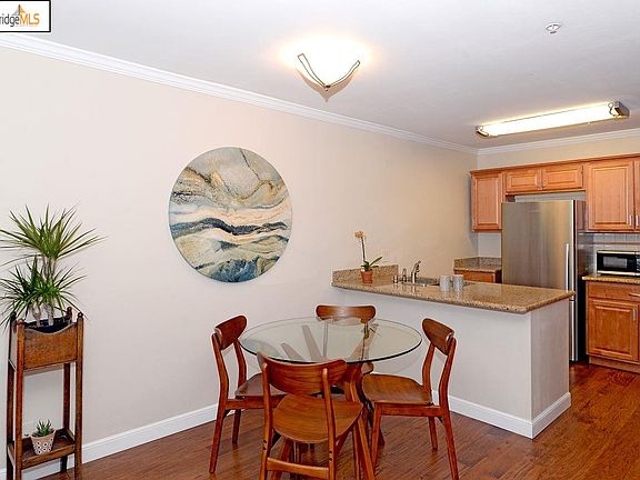 Gorgeous Adams Point condo with a tranquil verdant outlook. There is a great open living room with a wood-burning fireplace and a comfortable dining area. Living room's large windows and door lead to a nice balcony overlooking the quiet tree-lined street. The well-equipped kitchen is updated with granite countertops and stainless steel appliances. The bedroom is good-sized with big mirrored closets in hallway and sliding glass doors to the balcony. The tiled bathroom is also updated with a shower-over-tub and glass shower doors. Beautiful hardwood floors throughout give this condo a warm welcoming accent. The laundry area is on the same floor and there is a common roof deck. 1 car parking and storage are included also. Conveniently located this home is in walking distance to BART, Whole Foods, Lake Merritt, Grand Lake, library, restaurants and shopping. Easy access to freeways. Truly a great condo. Move right in!