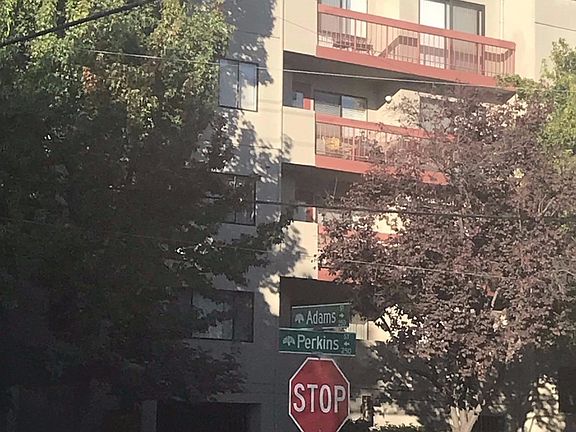 This fantastic condo is located in the desirable Adams Point neighborhood in Oakland!Lovely unit featuring a large Brm with a sliding door that leads to private balcony.Freshly painted,new carpet throughout,new stove, new microwave,woodburning fireplace in LR, large closet with mirrored doors, fire sprinklers, very clean and well maintained.The building offers secured entrance, laundry on the same floor, additional individual storage, gated parking with security cameras, elevator and roof deck.