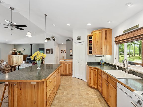 Welcome to a dream retreat in the heart of Klickitat County. On 40.22 private, forested acres with county-maintained paved road access (5 acre zoning), this thoughtfully crafted home offers a rare combination of tranquility & functionality in a stunning natural setting.Built by local craftsman Darrell Woodruff, this 4BD, 4BA home features nearly 3,000SQFT in main house with custom Shenandoah hickory cabinetry, open-concept main living area w/wood-burning stove (plumbed for propane), spacious island kitchen w/ dual pantries, primary suite complete w/ walk-in closet & ensuite bath w/ walk-in shower. Laundry room, conveniently located near the primary suite includes washer & dryer, utility sink & additional storage. Two-car garage w/9’ doors & deep bays adds to the convenience. Don’t miss the separate guest suite attached to the garage & accessible via a covered breezeway—ideal for visitors or multigenerational living. The daylight basement includes two large bedrooms, generous living room (also plumbed for propane heat), mechanical room & large storage room w/water filtration system (currently not in use). It even has a perfect Gorge gear garage aka the “Gator Garage” allowing easy access to all your toys, tools & recreational equipment. Outdoor living shines here with a wrap-around deck plumbed for propane, GFCI outlets & breathtaking views of a property with the perfect mix of mostly fir & pine trees designated as a Stewardship Forest for fire safety. Hop on the Gator to ride down to the Stump Creek or enjoy picking fruit in the fenced in garden area including Honeycrisp & Gravenstein apples, plum & peaches. Yum!All this w/all the outbuildings you could ask for. 30’x50’ partially insulated shop w/ 200-amp service, cement floors, loft with electric lift, woodstove & attached 15’x50’ leanto. 30’x42’ pole barn w/ 30-amp power & water—perfect for RV or boat storage. 12’x28’ equipment shed for lawn & garden tools. 8’x15 woodshed.You cannot beat this value!