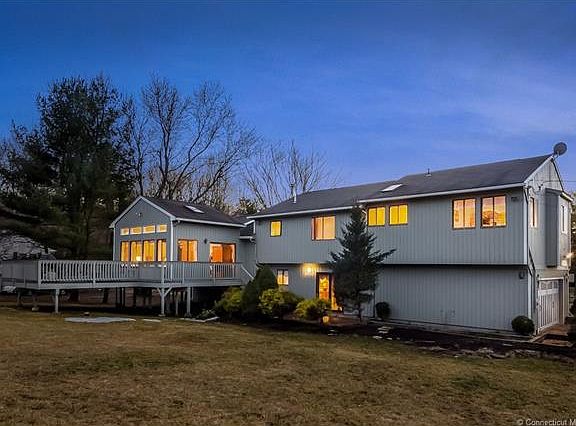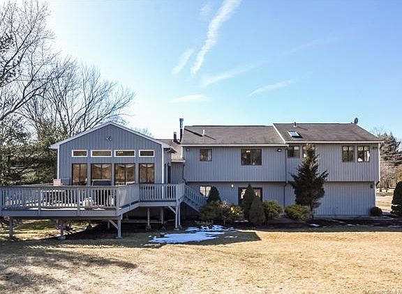Sprawling open home with great entertaining spaces inside and out! Located in the Village of Northford not far from Durham, there is easy access to North Guilford, North Madison, Wallingford and North Haven. It is situated on a very large, level lot and within walking distance to hiking trails that lead to Guilford. The home itself has a beautiful cook's kitchen/dining area overlooking the sunken living room, and adjacent to a gorgeous sunroom (with propane fireplace) overlooking spacious deck and yard. Skylights adorn those areas. Steps up from the kitchen give way to a long hall leading to a massive master bedroom suite with large office space, enviable walk-in closet and gorgeous master bath including jacuzzi tub, shower stall, double vanity, and linen closet. There are three more bedrooms (one of which contains an en suite full bath) off the long hall, and another full bath. Steps down from the kitchen lead to an impressive soaring foyer with coat closet, which then opens to a great room with another bath, sliders opening to a brick patio, and entry to and from the garage. From that room, step down to a bonus room which could be another bedroom, office, playroom, exercise area, or music room. Finally, a laundry room is separated by another door. Well pump brand new, water tank new, septic pumped out recently and all other mechanicals in good working order. This home has unique architectural points and storage galore. A must see!Agent/owner related.