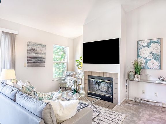This top floor, end unit condo offers tranquil lagoon views and is located within the gated Reflections Community of San Ramon. With its prime location near the Bishop Ranch City Center and Iron Horse Regional Trail, this property offers convenient access to shopping, dining, and outdoor recreation, and top rated schools. The home has been updated; featuring new paint, carpeting, and light fixtures. Enjoy the updated open kitchen's stainless steel appliances and refinished cabinets, while the cozy family room offers a fireplace, vaulted ceilings, and sliding doors that bring in natural light. The bedroom provides ample closet space, and convenient in-unit stacking washer and dryer. The Reflections Community offers a range of amenities that enhance your living experience. Take a dip in the sparkling pool, relax in the hot tub, or enjoy the BBQ area and on-site gym with family and friends. Don't miss this incredible opportunity to own a piece of San Ramon's resort-style living.