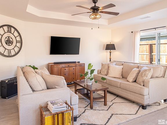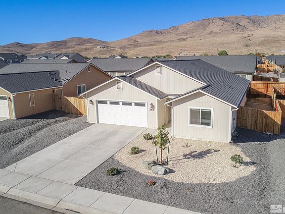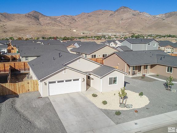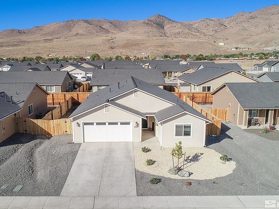 BETTER THAN NEW - SINGLE STORY W/OVER 29k in UPGRADES! Built in 2020, this desirable Ponderosa floorplan has an open-concept design w/tons of natural light. The primary suite is set away from the other bedrooms for privacy & offers a spacious walk-in closet & double sinks. Upgraded kitchen w/ample storage, center island, breakfast bar, pantry & stainless appliances. Upgraded features include woodgrain laminate flooring, designer light fixtures, designer faux wood blinds, wood-look porcelain patio & more., Do you want to get away from the hustle and bustle yet still have the convenience of shopping and tons of outdoor recreation at your fingertips? Are you looking for turn-key home w/designer features throughout at an affordable price? Your search is over! This nearly new 3bd 2bath 2 car garage home on .14 acres in the beautiful Dayton Gold Country Estates, offers all of that and more! Some additional features are pre-wired for EV charging at the breaker, rain gutters & downspouts, 5.5” baseboards finish all areas w/laminate tile, upgraded kitchen faucet, designer cabinet pulls in kitchen and bathrooms. Newer refrigerator, washer and dryer are included with the sale of the home. Come live in historic Dayton NV. Dayton is just 11 miles East of Carson City & claims the title of Nevada’s first documented gold discovery in 1849! There’s an abundance of outdoor activities including Dayton State Park, a 152-acre public park located at the foot of the Virginia Range. Dayton Valley Golf Course, considered a premier Northern Nevada course, is an 18-hole, Arnold Palmer-designed course that offers spectacular greens & stunning views. Plus you're only a 29-minute drive to gorgeous Lake Tahoe, 45 minutes to Mt Rose Ski Resort & a 48-minute drive to the Reno-Tahoe International Airport. Please Note: A virtual tour and video have been provided. Some photos have been digitally stage to help visualize what the area could look like with furniture added.