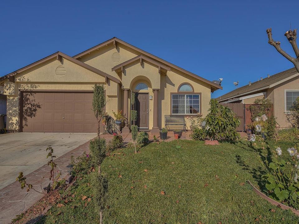Welcome Home to 245 Rockrose St. As you enter you are greeted into a welcoming living room with high ceilings and tile flooring throughout. Enjoy the fireplace near the kitchen for those cozy nights of Soledad and all the cabinets in the kitchen. The main bedrooms has its own en-suite and the additional bathroom in the hallway for your guests. The backyard has stamped concrete for low maintenance yard.