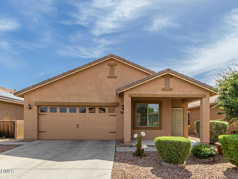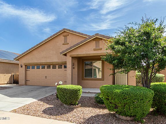 Home, sweet home! This is your chance to own a charming 3 bed, 2 bath property in the adult Community of Sundance! This beauty offers a low-care landscape and a cozy front porch where you can sit and sip your morning cup of coffee. Welcoming interior includes tile flooring in all main areas, a carpeted den with double doors, and a bright great room with a living and dining area. Cooking is a delight in this impeccable kitchen, providing plenty of cabinet space, built-in appliances, granite counters, a pantry, recessed lighting, and a breakfast bar. Continue onto the main bedroom to find a spotless ensuite w/dual sinks and a walk-in closet. Have a wonderful day in this serene backyard providing a covered patio, pavers, and artificial turf. Hurry! Visit now!