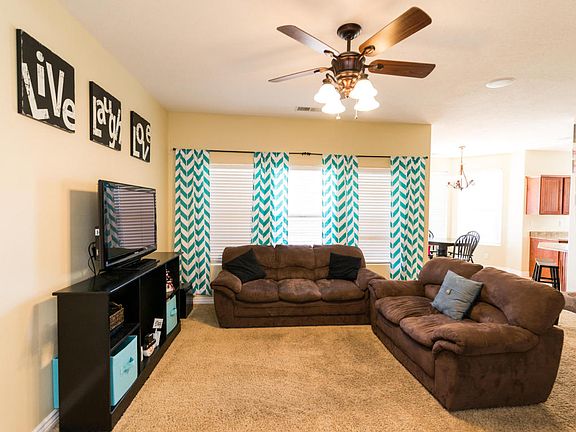 Beautiful 3 bedroom 2 bath home in The Villas at Sunset Canyon. This 2,000+ SqFt home conveniently has all 3 bedrooms and the laundry room on the main floor, with a great bonus area upstairs above the garage with 2 enclosed rooms. The Master Suite has a large jetted tub, two sinks & vanities, and a stand-up shower. The kitchen is spacious with beautiful cabinets, lots of counter space, a large double sink, and tile flooring. There is a great bump-out dining area which adds character both inside and outside the home. The large backyard is surrounded by a full block wall for added privacy and includes a shed for extra storage. Great patio space with shade in the hot summer months and plenty of room for outdoor patio furniture, a grill, and your dearest friends and family.