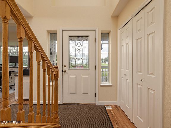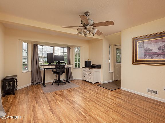 Classic Creek Front Living in a Great Commute spot! Newer paint, 2019 kitchen remodel (including built in hutch w/ wine bar), SS appliances, bathrooms recently refreshed and newer water heater! This 3-4 bedroom home (3 bed septic with 4th flex room) has spaces for family members to spread out and then come together. Primary bedroom (SEE SUPPLEMENT)with private en suite bath plus 2 more bedrooms upstairs, and flex room off living. Convenient half bath downstairs for guests. Ample parking with spot for RV. Enjoy sitting on the spacious back deck and listen to the creek babble as you grill out. Established raspberry bushes provide some of the sweetness Alaska has to offer as well. New waterproof lamintate is being installed throughout the lower level, and the ducts were recently cleaned. This home is ready for you to move right in.