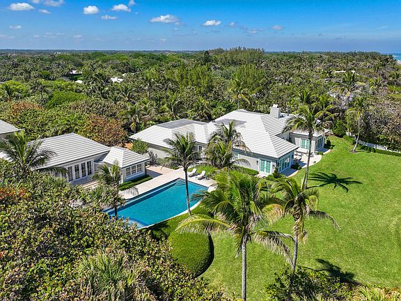 Welcome to 245 S Beach Rd. a spectacular 11 bedroom, family compound sitting on 2.2 acres with 242' of direct ocean frontage in the heart of beautiful Jupiter Island. All three structures have been completely renovated and comply to current building codes. A 19'+elevation offers undisturbed, panoramic views of the turquoise Atlantic. The main house features 5 bedrooms and multiple comfortable sitting areas (Living room, Family Room and Library) with ocean views perfect for relaxing or entertaining. There are also 2 three bedroom guest houses. Outdoors the large pool and expansive terraces connect the main house to the two guest houses. This wonderful property offers the best of tropical living with total privacy on a secluded beach.
