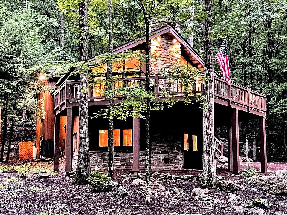 A QUINTESSENTIAL CHALET INSIDE AND OUT! THIS CHALET IS LOCATED IN THE PRIVATE, GATED COMMUNITY OF EAGLE ROCK RESORT, WITHIN WALKING DISTANCE TO THE LAKE. THIS IS A TURN KEY HOME ,DECORATED IN RUSTIC MOTIF FURNITURE FROM CABELA'S .IT IS THE PERFECT MOUNTAIN RETREAT OR FAMILY HOME , WITH 4 BEDROOMS , AND A COZY FINISHED LOWER LEVEL. Spacious inside and out!