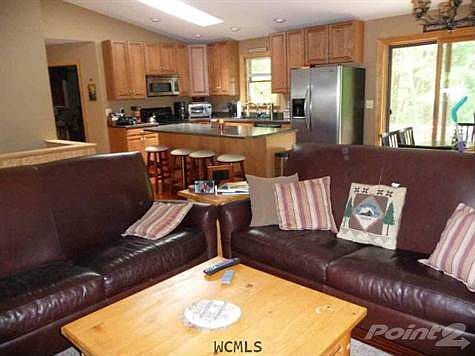 Wait til you see the interior of this home! No work here! New kitchen and baths. Open floor plan with vaulted ceiling. Large wrap deck, Adirondack charm.Wood, tile and ceramic floors. Neutral colors. storage shed and room to put a garage and etc.
