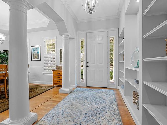 Under contract-accepting backup offers. Welcome to this beautiful craftsman style home built by Dibros Design and Construction on an oversized lot in the heart of Town of Tioga. The home features 4 bedrooms and 3 bathrooms, 2,627 sqft of living space, a large picturesque yard, and a 2 car garage on a third of an acre! All of the living space along with three of the bedrooms, including the primary suite, are downstairs with a sizable bedroom suite and full bathroom upstairs. As you approach the home, you’ll appreciate the front yard and well-manicured landscaping, in addition to the architectural columns, newer roof (2022), durable hardiboard cement siding, and oversized front porch. The front door opens to a light and bright welcoming foyer with built-in bookshelves that face the dining room/flex space. You will love the decorative plantation shutters, crown molding, and the beautiful hardwood flooring throughout the main areas and in the bedrooms. Moving through the home, you will find the kitchen which features solid maple wood cabinets, granite counters, and stainless steel appliances, including a gas range, that are sure to serve any chef in the family. Enjoy a quick breakfast or a morning coffee in the breakfast room that overlooks the expansive side yard. The kitchen opens to the living room, which also features built-in shelves and a gas fireplace that you can enjoy on those cooler winter days. The primary bedroom is at the back of the home, and it boasts a sizable walk-in closet and an ensuite bathroom with tiled walk-in shower, double vanity, and a large jetted tub. The two other bedrooms are located towards the front of the home and both offer oversized built-in closets with additional storage cabinets above. These secondary bedrooms share a hall bathroom featuring a vanity and a tiled tub-shower combo. The oversized fourth bedroom is situated upstairs with two large closets, built-in desk and bookshelves, vaulted ceiling, and a separate bathroom with a pedestal sink and a tub-shower combo. Enjoy tons of natural light throughout the main living areas with several windows and a single door that leads out to the back porch off the living room. Relax on the spacious screened back porch on cool spring days or summer nights, and set up your grill on the paver patio while hosting friends and family for bbqs in the fully fenced backyard. Warm up by the firepit on those cooler winter days and make some smores and create everlasting memories. In spring and summer your garden will be bursting with color as flowers bloom in your front and back yards. The 2 car garage provides ample storage for your vehicles, a golf cart, or sports and yard equipment. You'll appreciate lower utility bills with Clay Electric service. Town of Tioga residents enjoy a community pool, playground, pickleball courts, tennis and basketball courts, and relaxing walking trails, as well as some of the best holiday decorations and holiday festivities around! This home is just a short walk from Tioga Town Center where you’ll find Blue Highway Pizza, Gainesville Health and Fitness, Local Provisions, festive holiday events, and much more! Tioga is within close proximity to Jonesville shopping center, HCA Florida North Florida Hospital, UF, and UF Health Shands. Schedule your private showing today!