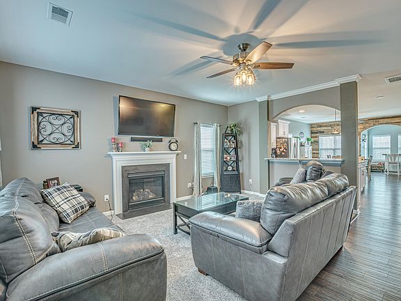 Absolutely beautiful, updated home Saxony Lake of Cane Bay. When you enter the home, you are greeted by a warm cozy living room with a natural gas fireplace to your left, and oak tread stairs to your right, the eat in kitchen and sunroom ahead. The kitchen is bright with white cabinets, a large island, and the sunroom off the back. This is a master down plan, the master has a great en suite bathroom with a 5 foot walk in shower and walk in closet. The powder room and laundry room round out the first level. The upstairs has 3 more bedrooms and a hall bath with double sinks. The upstairs rooms are large and one is bonus room sized. The back patio with a privacy screen is off the sunroom, the yard is huge and private with woods behind, a new matching storage shed out back. Almost 1/4 acre lot and an extra wide driveway as well! Storage shed does have power.