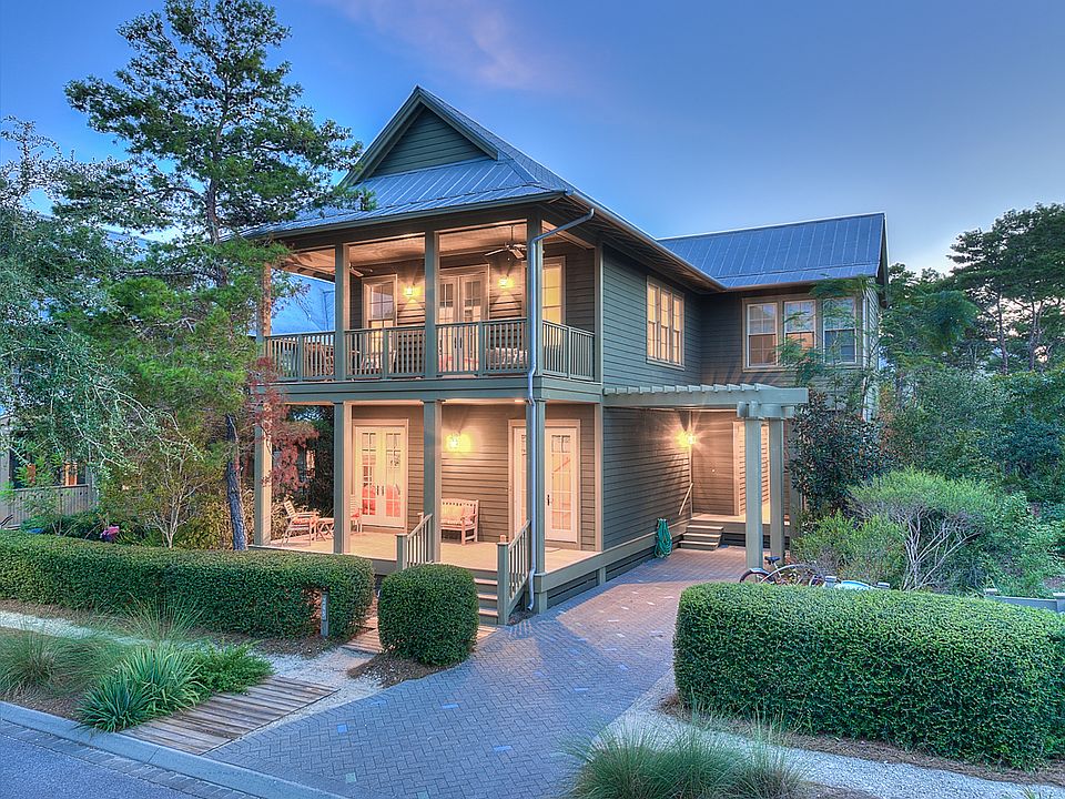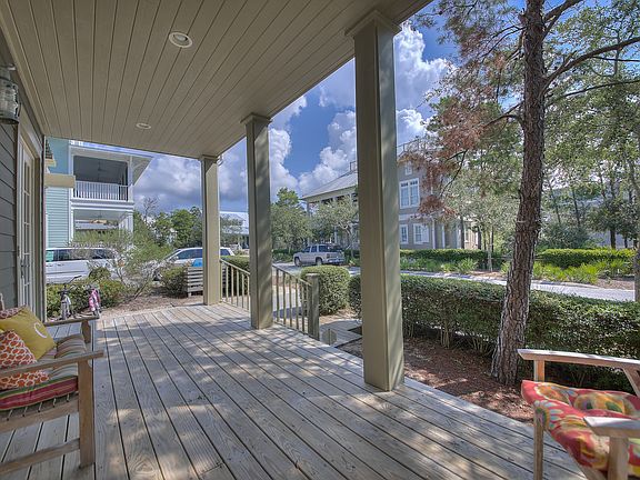This 4 bedroom Watercolor home is the perfect beach house. A tremendous value in Phase III, under $1.5M. With enough space to sleep 2 families, this is where you want to be and want to bring your friends. Located on a quiet side street, and bordering common area and trails. Outdoor living abounds on this property. There are 4 porches, and a patio with a summer kitchen. Spacious master suite, thoughtful layout, and a main living area created to entertain. This house is in just the right location- close to the ''frog pool,'' and an easy ride over the bicycle bridge to the beach. Mature landscaping combined with lots of windows means this house enjoys both the privacy and the light one desires in a Florida beach house. (Offered furnished with minor exclusions.)