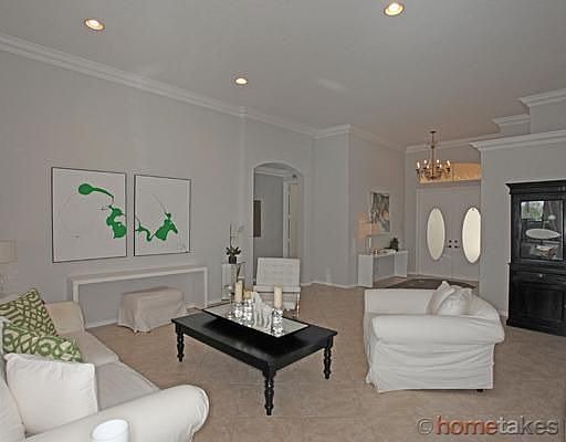 Beautiful single story Palencia model with soaring ceilings. spacious floorplan features many upgrades including wood floors, crown moldings, custom drapes & plantation shutters. Brokered And Advertised By: Illustrated Properties/Jupiter Listing Agent: Lauren Stango
