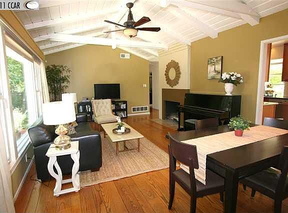 Updated kitchen w/granite, cozy brkfast nook, vaulted cathedral ceilings, hardwood floors, freshly painted. Lush backyard w/play structure. IDEAL LOCATION! Near end of cul-de-sac. Walk to Park, Trails, PH/WC BART, & Broadway Plaza