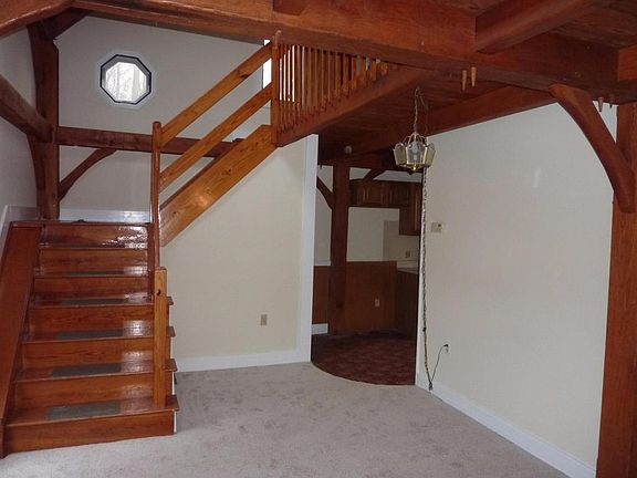Very dramatic post and beam cedar home on 5.4 secluded wooded acres. Very open floor plan with exposed wood beams, vaulted ceilings, sunroom w/hot tub, third floor loft, huge deck and wrap around porch. Full daylight basement with fireplace/wood stove. Freshly painted interior, new carpets, appliances, hot water heater and septic tanks. Property is eligible under the Freddie Mac First Look Initiative (owner occ preference period) thru 12/19/16.