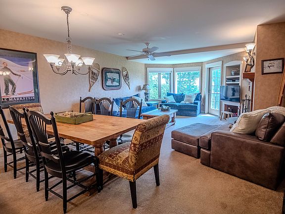Direct slopeside three bedroom unit located in the upper section of the Solitude Village community. Sunny south end fills the living space with natural light as well as offering wonderful southeasterly views of the Green Mountain Range accented by an expansive wrap around deck. Open living design includes kitchen with breakfast bar, separate dining area, and living room with lovely bay window. Woodburning fireplace compliments dining and living areas. Private owner suite incorporates mountain views. Two additional bedrooms with shared bath. Cedar lined mudroom with numerous built ins. Private exterior ski closet off the mudroom makes whisking off to the slopes fast and convenient.