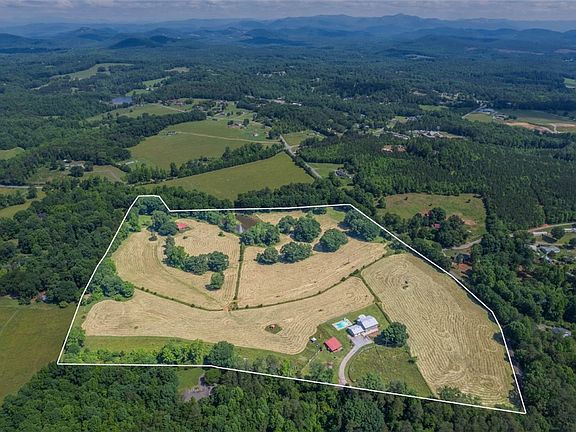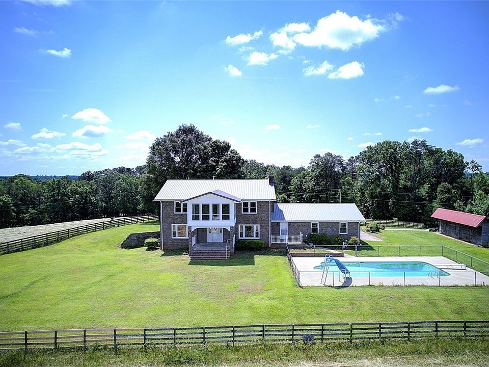 Nestled in the serene foothills with breathtaking views of the Blue Ridge Mountains, this stunning two-story residence offers the perfect blend of luxury and practicality across an expansive over 32-acre estate. This home is designed to maximize natural light and open space, creating an inviting and comfortable atmosphere. Upon arrival, you'll be greeted by a paved driveway leading to a picturesque home surrounded by mostly pasture land, all fenced in and ideal for a farm or mini farm. The property includes a large hay barn and an additional barn, providing ample space for agricultural pursuits. Inside, the home features an open floor plan that seamlessly connects the main living areas, making it perfect for both daily living and entertaining. The formal dining room is ideal for hosting gatherings, while the dedicated study or office offers a quiet place for work or reading. Large windows throughout the house flood the space with natural light and offer stunning mountain views from almost every room. One of the highlights of this home is the dual primary suites, offering flexibility and convenience. The main level primary suite is perfect for easy access, while the upstairs primary suite provides a private retreat. In total, the home includes four spacious bedrooms and three and a half bathrooms. The sunroom, which overlooks the majestic mountains, is a peaceful spot for relaxation. The expansive pool area features an inground pool with a slide, providing endless fun and entertainment options. Whether hosting summer pool parties or enjoying a quiet swim, this area is sure to impress. For added convenience, there are two laundry rooms with one on each level. The unfinished basement offers abundant storage space and potential for customization. A two-car garage provides secure parking and additional storage. Despite its private, tranquil setting, this property is just a short drive from grocery stores, shopping, and restaurants, offering the perfect balance of seclusion and accessibility. An outdoor wood furnace adds a rustic charm and efficient heating option for the cooler months. With its combination of elegant interiors, practical amenities, and stunning natural surroundings, this home offers a unique and desirable lifestyle. Whether you're looking for a serene retreat, a working farm, or a grand space for entertaining, this property has it all. A new pool pump and new gas logs were recently installed. The property is less than ten minutes to downtown Pickens, twenty minutes to Clemson, and thirty minutes to Greenville. Don't miss out on this unique, private, and beautiful property!
