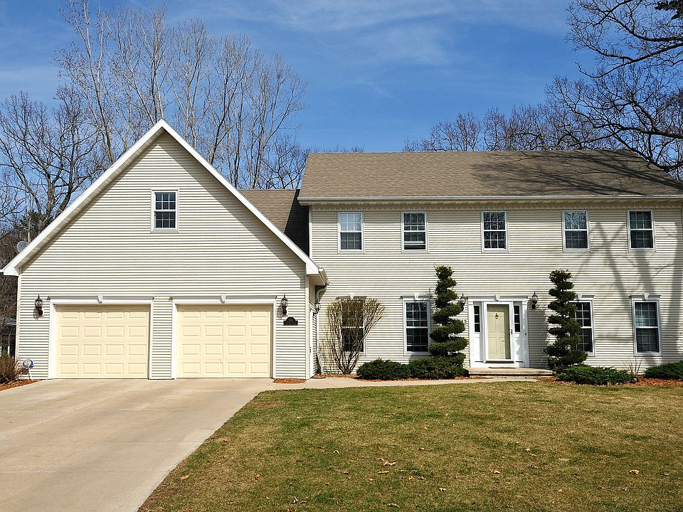 Extremely spacious home situated on a beautiful wooded lot! Large kitchen features center island w/granite top, walk-in pantry & wet bar. Living room w/brick fireplace. Master suite w/huge walk-in closet & private bath w/whirlpool tub. Finished lower level includes family room w/fireplace, game room & hot tub room w/walk out access to patio. Basement access. New large deck over looks wooded ravine. Owner 920-606-0140 heimermantina@aol.com