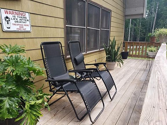 2 bedroom cabin. 2 beds upstairs with full bathroom. Bathroom, laundry room kitchen living room, downstairs. Metal roof. Private well and septic. Fenced back yard for pets. Wooded lot . Just over 2 acres Low ceiling basement. Cement block foundation. Wood stove heat with direct vent Propane heater. Deck front and back. Drive way is downhill. Cabin Needs some TLC .We have lived in past 5 years. Very livable. Stainless appliances go with it Washer dryer included. Internet access. Detached garage is large with large up stairs storage. House and garage have separate power .100 amp .. cabin has some sill plate needs replaced but not limited to that.. Shed also included . More pictures to listing soon . Not interested in listing with realtor at this time please respect that. By appointment only no drive ins.
