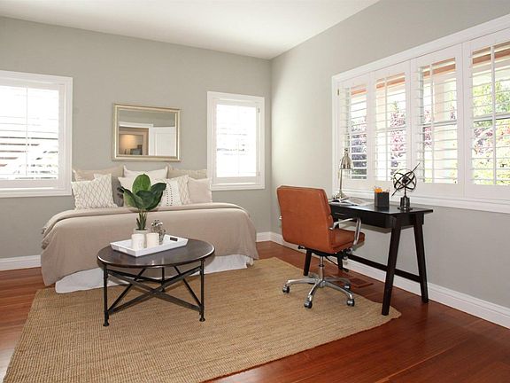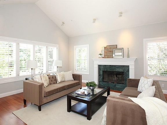 Treetop views from every room, No winding streets or one lane roads & conveniently located just off the Alameda on a half acre level lot. Traditional floor plan includes: Downstairs, formal living room, formal dining room, ensuite bedroom or office, open kitchen and great room with soaring ceilings. Upstairs, An incredibly large master suite with adjacent nursery or office, another bedroom ensuite and two bedrooms that share a hall bath. The yard includes a basketball court, deck and room for a pool. .