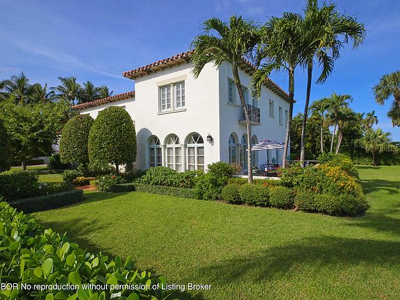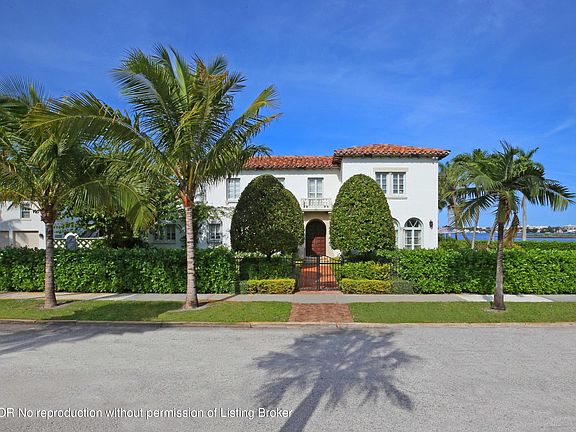 Built in 1925, the ''Grand Dame'' of El Cid is the most important Historic waterfront home of its era in West Palm Beach. The architectural splendor of the roaring twenties is bountiful in this unique masterpiece from the soaring ceiling heights right down to the original hardware on the windows. After welcoming you with priceless Pecky Cypress radius top double entry doors, the wrought iron and ''cast-in-place'' concrete staircase dominates the entry foyer and serves as the centerpiece of the home. From there, the living and family rooms are graced with original French doors that lead to the open waterfront patio. The views from every room across the massive front lawn to the Intracoastal Waterway and Palm Beach are breathtaking. The formal dining room and recently updated gourmet kitchen and butler's pantry dominate the opposite side of the entry and are state-of-the-art in appointments. A hardwood paneled library and powder room are off the entry foyer. Upstairs the views from the massive Master Suite are as you would expect...fabulous. Three additional bedrooms plus 2 baths and a large laundry make this the perfect home for both family and guests to enjoy. This spectacular waterfront home sits on a huge corner lot that boasts over 25,000 square feet of property and 138' of frontage along Flagler Drive. The large driveway, accessed from Valencia Road leads to a two car garage with a fully efficient guest house above it. This magnificent home has been updated to include, but not limited to, a fabulous gourmet kitchen, 2 new baths, barrel tile roofs, Icynene attic insulation, A/C systems, irrigation and new landscaping/outdoor lighting.