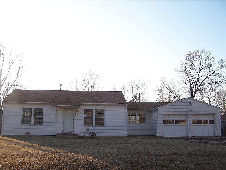 This spacious 2 bedroom, 1 bath home in Haysville sits on nearly 1/2 acre and features an extra 2 car garage/workshop! Interior features hardwood floors, dining space with sliding door to deck, bright kitchen, and main floor laundry. This home may be eligible for 203k financing.
