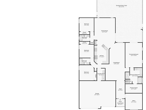 Large center islandGorgeous south facing poolThree additional well-appointed bedroomsDedicated home officeOpen-concept floor planVersatile denSpacious primary suite