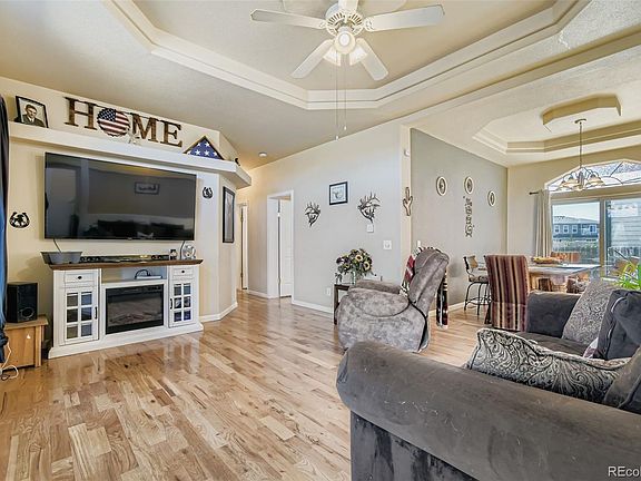 This fabulous home features almost 3000 square feet of living space with 4 bedrooms 3 full bathrooms and finished basement! This is a beautiful home with so much to offer!!! Real hardwood floors welcome you the minute you walk in the door! 10' coffered ceilings on the main floor as well as built in shelf space to display all your favorite things! The primary suite has a deep walk in closet, bonus area/sitting nook and a large 5 piece master bathroom including with jetted tub and linen closet. Enjoy the large open kitchen with breakfast bar and ample dining area. Laundry is also conveniently located on the main floor. A second bedroom and full bathroom complete the main floor! The full finished basement with 2 additional bedrooms, full bathroom and large family room makes great space for additional living space or work out area! The large concrete back patio and Gazebo make this an ideal space for outdoor entertaining! New roof and exterior repairs to the trim, stone work and front porch coming soon! The expansive driveway allows for 5 additional spaces of extra parking, rv, trailers or toys! The garage is oversized deep. Low Taxes, NO HOA and NO Metro District makes this home more affordable!