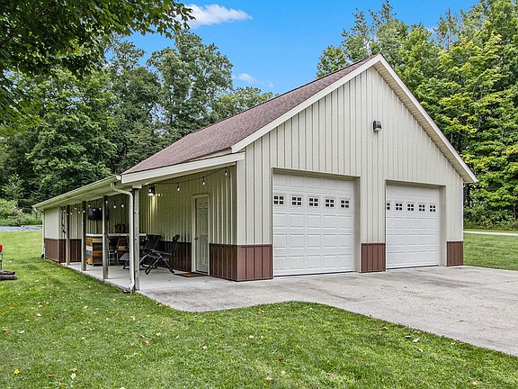 Custom built home on 3+ acres tucked in the woods with full concrete driveway. Updated paint in 90% plus of home plus an added office and more. The spacious living room has a fireplace, overlooks the decorative pond with waterfall feature and mature canopy of trees framing the backyard. Oversized master suite upstairs is complete with an office and private master bath with whirlpool tub and shower. Bedrooms 2 & 3 both have picturesque views of surrounding property. Walkout level features a 4th bedroom with a private full bath and family room that opens to stamped concrete patio with fire pit. Home boasts an absolutely amazing 30x40 detached pole barn with radiant in-floor heat, spray foam insulation and its own bathroom! *Seller is license real estate broker in State of Michigan.*