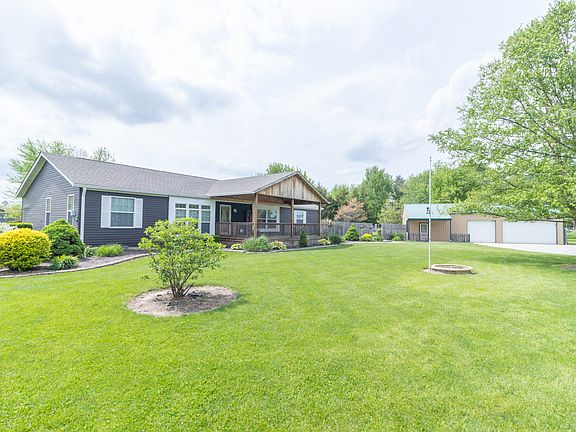 Don't let the address fool you! You can barely see this one from the road. A picturesque setting that leaves you in the country but close to local amenities. 3 bedroom/2 bath one level modular ranch on 4 acres, a 30x50 pole barn with insulated office area and two over head doors. Every bedroom has extra large walk in closet. Very large driveway that has an opportunity for additional income for trailer/RV parking. Be sure and check the info with list of updates in additional docs. Beautiful landscape, custom built pergola and the option of New Palestine or Morristown School systems. Be sure to put Fountaintown in GPS as New Palestine may pull up. Look for RED mailbox! Pots in Garden, long wooden stand that is potting soil holder in Garden, landscape bricks & fence posts by wood pile do not convey. Any remaining personal property in house & barn will be removed prior to closing. Sellers are including a 1 year home warranty.