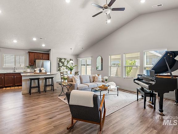 OPEN HOUSE 7/14-16 Fri 2-4pm, Sat 10-1pm & Sun 11-1pm. Prime North Meridian location close to shopping, schools and restaurants with easy access to both the freeway and Chinden. Cheerful light tumbles into this immaculately maintained single level charmer with south facing backyard. The seamless flow between the kitchen, family room, dining area and patio is ideal for entertaining. Chefs will delight in the thoughtfully designed spacious kitchen with vaulted ceilings, ample counter space, granite counters, walk-in pantry and large island with breakfast bar. Desirable split bedroom layout separates the primary bedroom from the others. Unwind in the private owner’s en-suite which overlooks the backyard and boasts a sizable bathroom and walk-in closet. Outdoor enthusiasts will relish the fully fenced back yard with covered patio and fruit trees. Garage is fully insulated for your cars and toys!