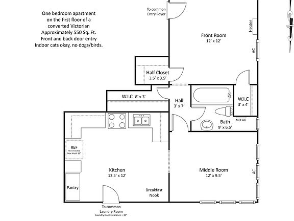 While living in this vintage converted Victorian home close to downtown Fullerton, one can enjoy many and varied dining and shopping options available within walking distance. This one bedroom, one bath, first floor has a large kitchen and dining area. This apartment has been wired for AT&T Gigafiber. There is a coin operated washer and dryer, which are easily accessible from the back door of the apartment. A shared garage space is included. This apartment is available on May 1, 2024. There is an open house on Saturday, April 20, 2024, from 11am-3pm. Apartment is available May 1, 2024. Application fee is $25 per adult. Owner pays for water, gas and trash. Tenant pays electricity, internet/cable. Smoking is not allowed in the apartments. There is a shared garage space with a garage door opener. Any additional cars need to park on the street. The only pets allowed are cats. There will be an addendum added to the rental agreement packet, as well as a fee of $200. The rental agreement is a month to month agreement. The rent is to be paid on the first of each month. After the first, there is a 6% late fee. A gas stove is furnished with the apartment. Tenant has to supply their own refrigerator.