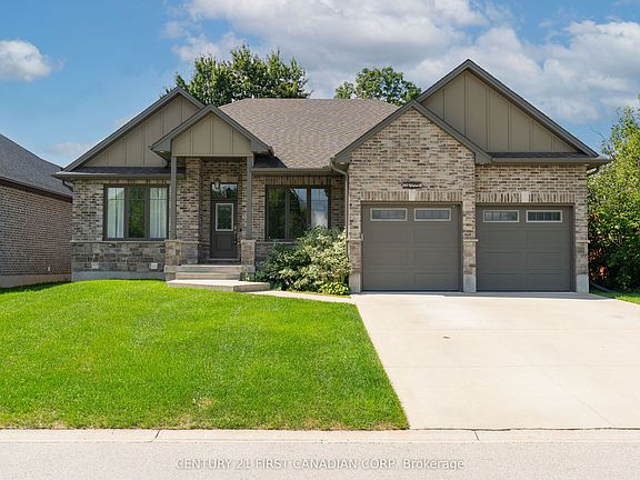 Welcome to 245 Walnut Sta stunning executive bungalow offering over 2,000 square feet of beautifully finished main floor living space. Set on an impressive 217-foot deep lot, this home is the perfect blend of luxury, comfort, and thoughtful design. You'll be greeted by exceptional curb appeal, highlighted by modern stonework, a covered front porch, and a concrete driveway. Inside, the welcoming foyer leads to a formal dining room with a custom accent wall and a convenient serving area ideal for entertaining or family gatherings.The gourmet kitchen is a showstopper, featuring white cabinetry, quartz countertops, stainless steel appliances, and a spacious island that seamlessly connects to the great room. Enjoy cozy evenings by the gas fireplace, or take in the abundance of natural light and views of the impressive backyard.Step through the dinette to a generous covered deck and a 20 x 30 poured concrete pad perfect for outdoor dining or relaxing.The private bedroom wing offers two large bedrooms and a full bathroom, while the primary suite is a true retreat with vaulted ceilings, a spa-inspired five-piece ensuite, and a custom walk-in closet/dressing room.A dedicated laundry room provides plenty of storage and functionality. The fully finished lower level extends your living space with a sprawling rec room, ample storage, rough-in for a bar, a beautifully finished office that doubles as a workout room, an additional bedroom, and a full bath ideal for guests or a growing family.The backyard is a rare find in Lucan, with a 217 deep lot lined by mature trees for privacy. Enjoy the hot tub (installed in 2022) and a custom storage shed.This home is truly magazine-worthy offering high-end finishes, functional spaces, and every feature you could want, all in a family-friendly, growing community with great schools, parks, and amenities nearby. Don't miss your chance to make this exceptional property your new home, book your private showing today!