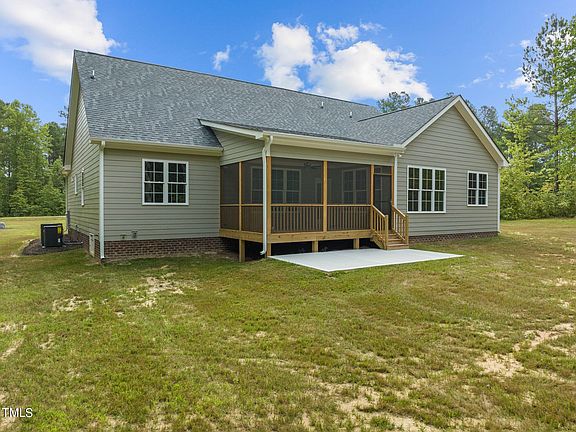 New Phase of Established Subdivision. New Custom built plan just completed on almost acre lot. Tucked away right off Hwy 401 - far enough away for privacy but straight shot into Rolesville and Raleigh. Low maintenance concrete siding exterior with southern porch and screened porch. 4 Bedroom with Br #4 being upstairs with bonus. Open vaulted great room with stone finish hearth and gas logs. Engineered Hardwood flooring and ceramic tile in baths and laundry. Kitchen Island with quartz tops and stainless steel appliances. Large walk in closet and shower in primary bedroom with linen closet. Great storage in walk in attic - no pull down to climb up. Sealed Crawlspace for energy efficiency. Dmns from Builder Plans.