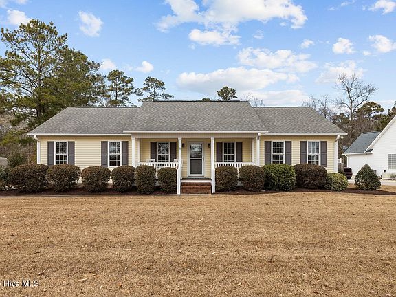 245 White Oak Bluff Rd is a beautifully renovated home featuring 3 bedrooms, 2 bathrooms, and a spacious mudroom/laundry. A two car carport, PLUS extra large detached garage!! Some updates include newer HVAC, refinished HARDWOOD floors, refaced kitchen cabinets, new hardware, new remote-controlled ceiling fans, tankless water heater, beautifully renovated master bathroom, new light fixtures...the list goes on! The master suite boasts a grand ensuite with a soaking tub and large walk-in, tiled, shower (glass door surround will be installed). The home also offers Trex decking on both front and back porches, along with vinyl railings which eliminate the need for deck maintenance. For additional space, there's a detached two-car garage with its own mini-split system (heating and cooling options), a 50AMP RV plug, and a large, unfinished area above the garage (nearly 700 sqft). Located in the quiet community of White Oak Bluff, it's also a boater's paradise with easy access to Hadnot Creek which leads to the White Oak River. The community offers a Hog-Slat pier and boat ramp making it easy to drop your boat in the water and head towards Historic Swansboro, or simply take a cruise. Soo much to love in this one-level home... plenty of flex space for hobbies and is conveniently located close to town. Schedule a showing today!