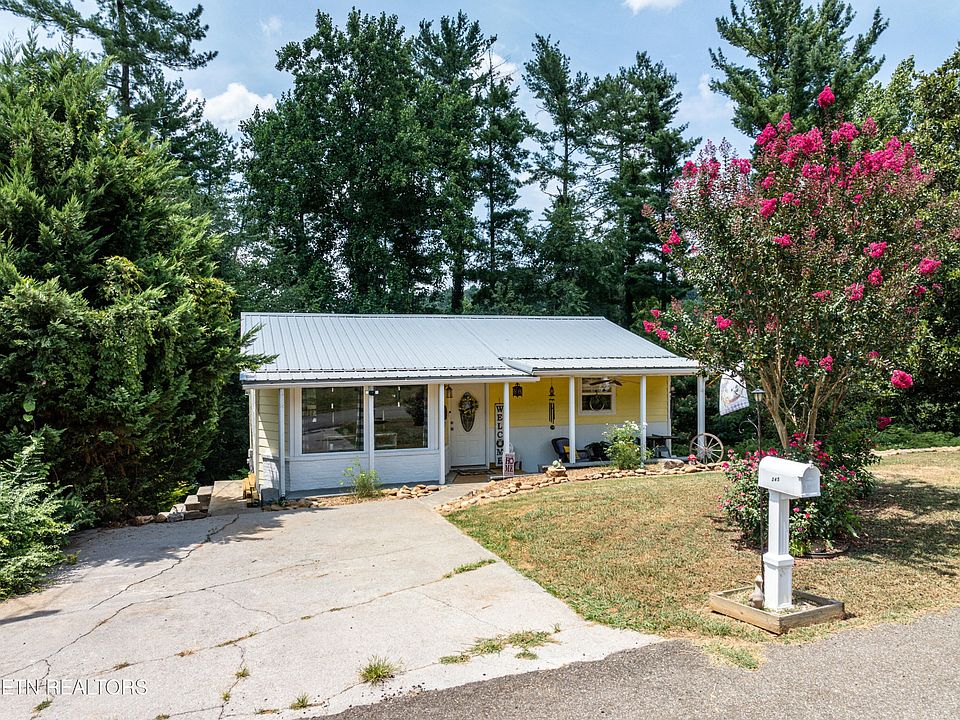 Adorable cottage style home situated in cul-de-sac*2 Bedroom with 1 and 1/2 Bath *Primary Bedroom features half bath and laundry room*Spacious Living Room with Electric Fireplace and Antique Fireplace Mantle for extra charm*Hardwood and Tile floors throughout*Open Kitchen with stainless appliances*Rustic Gate to separate kitchen from living adds to the charm and is great for pets or children*Newer Deck off of kitchen*Cozy covered front porch*Side yard has fire pit area and privacy fence in the shade of the trees*Fall asleep to the peaceful sound of the summer rain on the Metal Roof*HVAC and Water Heater have just recently been replaced